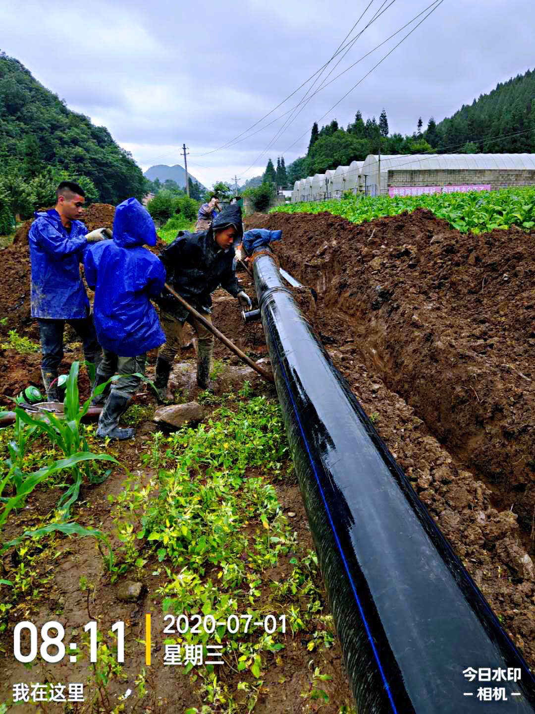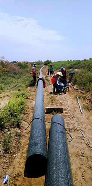PE给水管铺设,甘肃临洮县,忙碌了一天